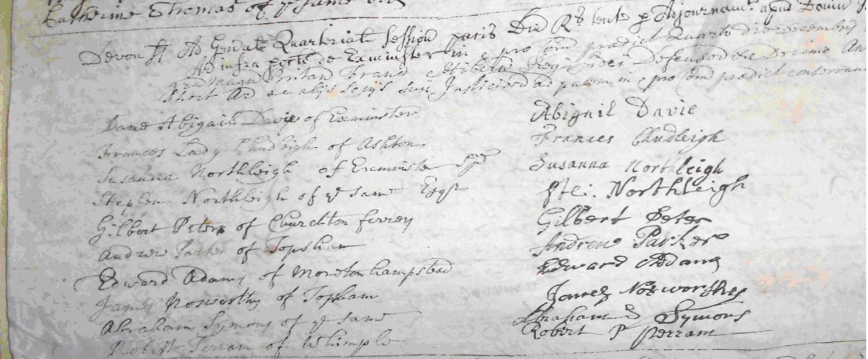Figure 1: QS17/2/5/1, Oaths sworn at the home of Stephen Northleigh, Exminster on 4 December 1723. (Click on image to enlarge)