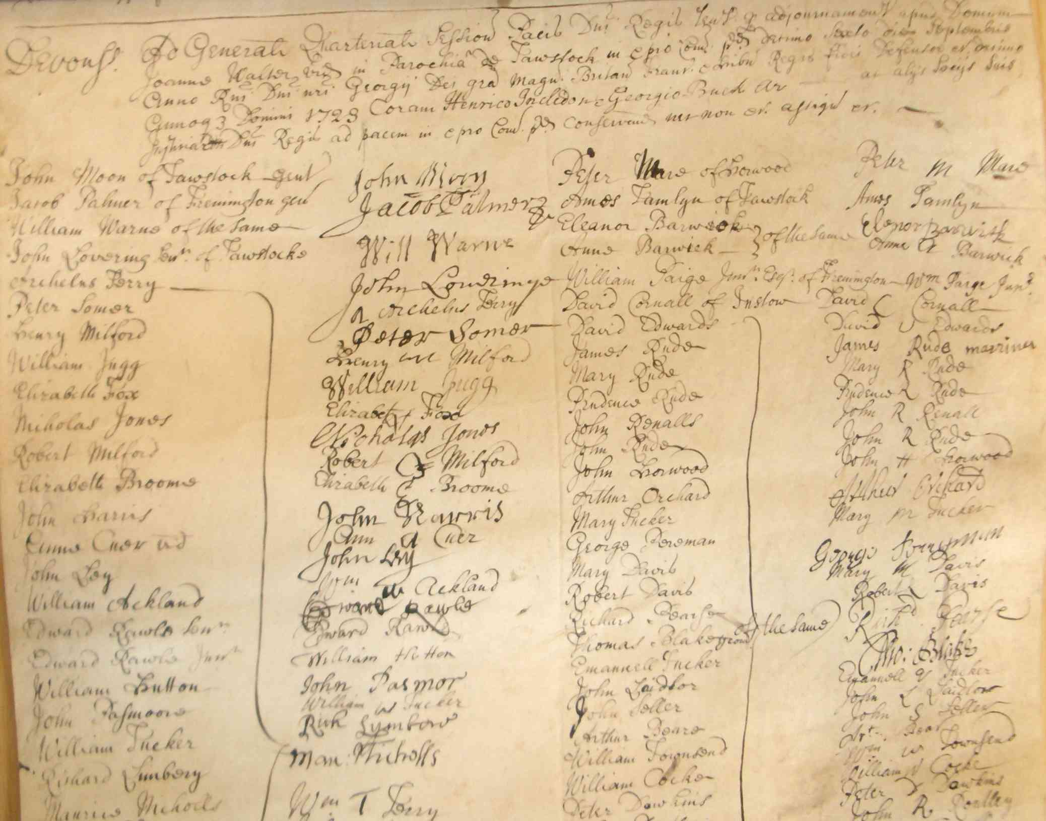 Figure 10. QS17/2/2/10b. Oaths sworn at the home of Joanne Walter, widow, in Tawstock on 16 September 1723.
