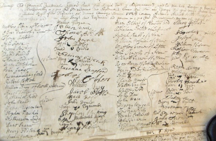 Figure 6: QS17/2/2/7. Oaths sworn at the Market House, Holsworthy on 11 September 1723. (Click on image to enlarge)
