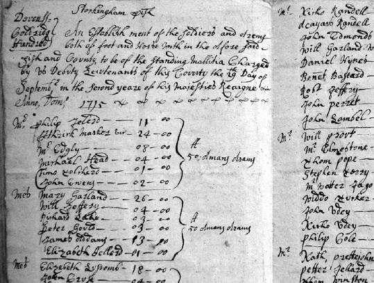 Figure 3: Stokenham militia assessment (part) for cavalry. DHC Z1/43/1 (reproduced by permission).
