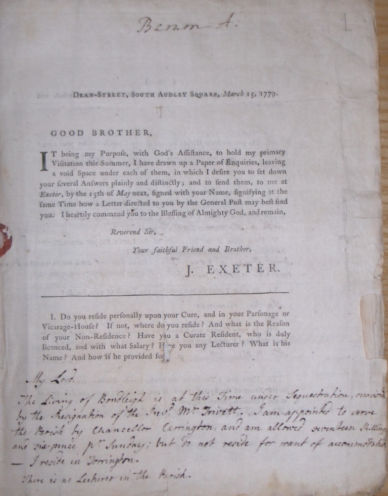 Figure 5: Chanter 232A, 1. 1779 replies of Thomas May of Bondleigh (Click on image to enlarge). Figure 6 and Figure 7